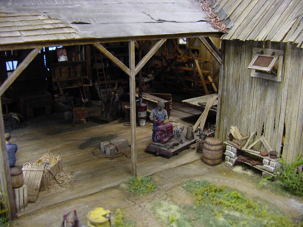 These next five shots are all from Dave Revelia’s incredible Tractor Repair Shed done in 1:35. Might have been inspired by Sierra West’s tractor repair shed kits. 1:35 is a good scale for this kind of work since excellent figures and detail parts are available from the Military models world. This diorama won Best of Show.